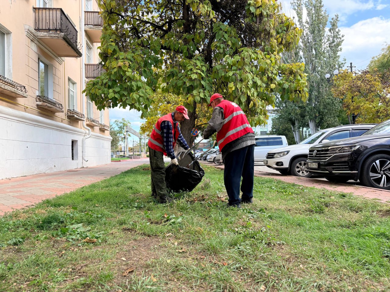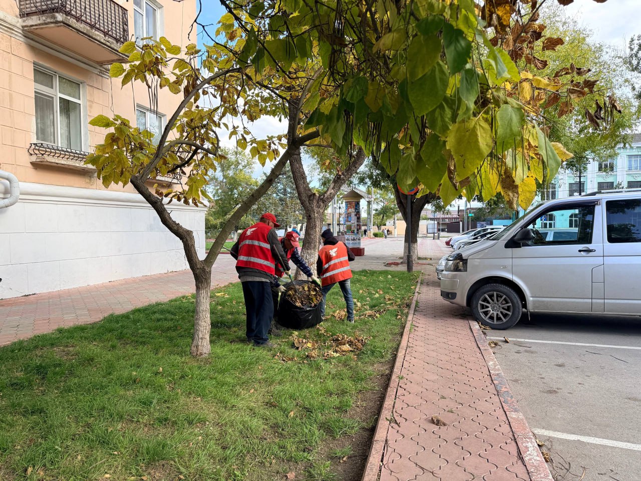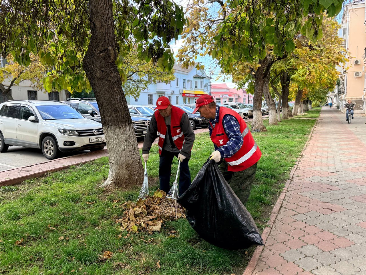 В уборке листвы и случайного мусора, очистке подбордюрной зоны, тротуаров и других пешеходных зон от пыли ежедневно участвуют более двухсот рабочих. Бригады трудятся во всех районах города.