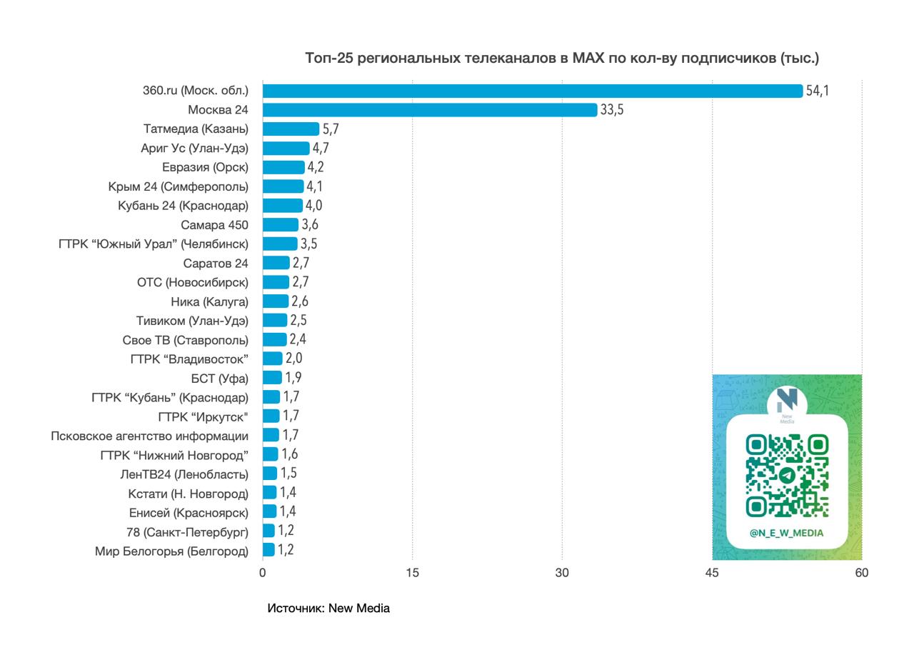 «Крым 24» занял шестое место по количеству подписчиков среди региональных телеканалов в мессенджере MAX