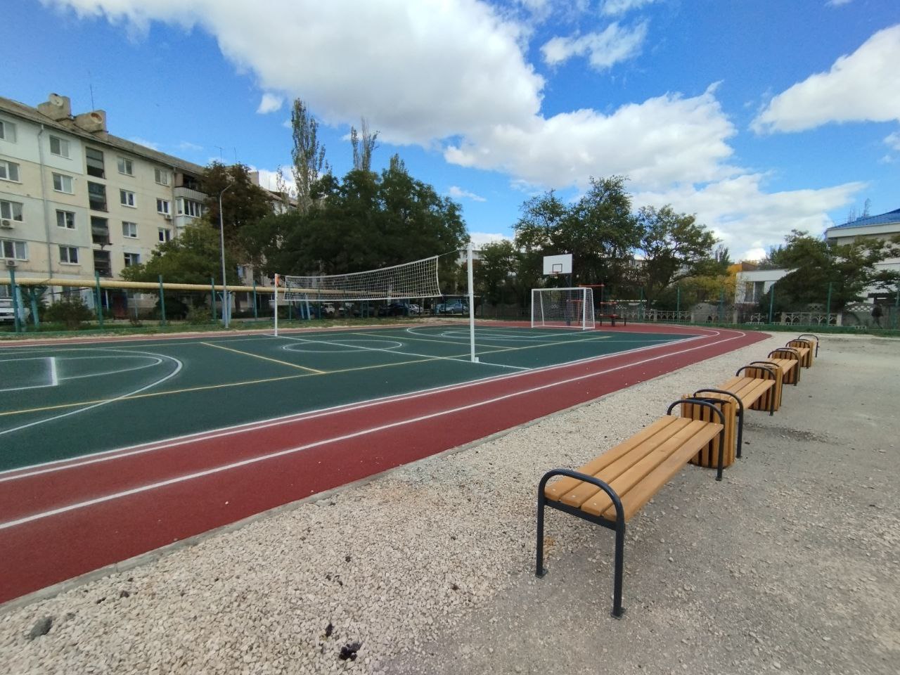 В школе №6 посёлка Орджоникидзе обустроили стадион. Как и планировалось, здесь провели укладку покрытия и установили малые архитектурные формы.
