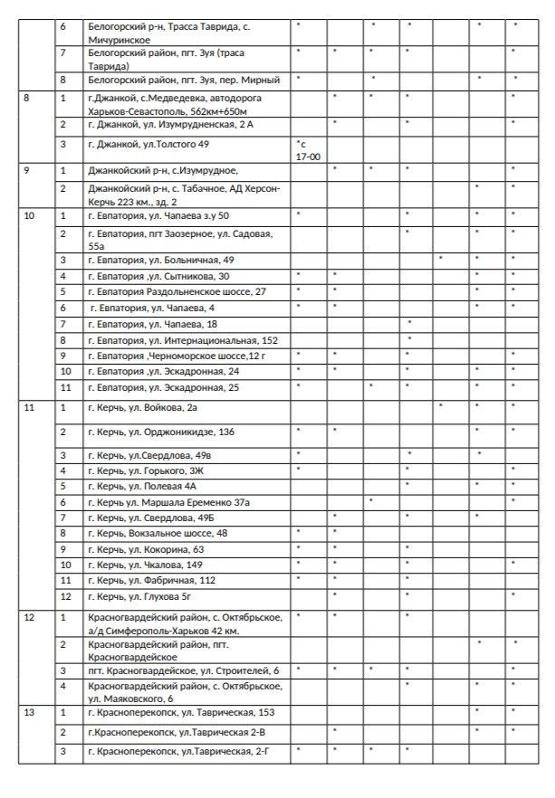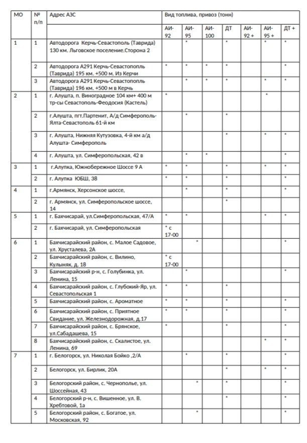 Перечень адресов АЗС, где имеется топливо в свободной продаже