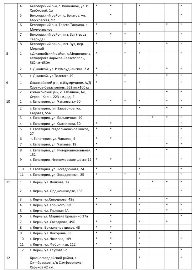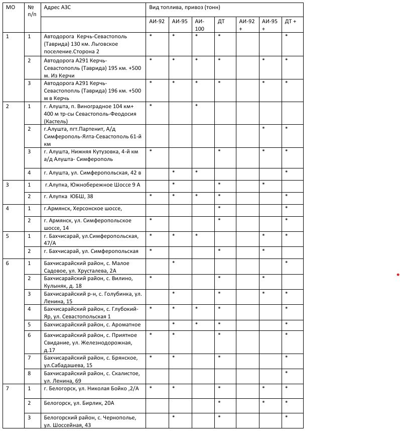 Перечень адресов АЗС, где имеется топливо в свободной продаже