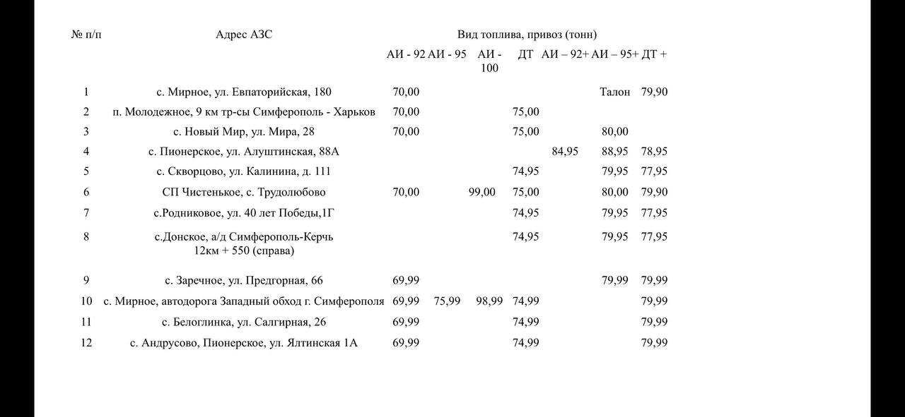 Продолжаем мониторить наличие топлива на автозаправочных станциях расположенных на территории Симферопольского района реализуемого за наличный расчет.