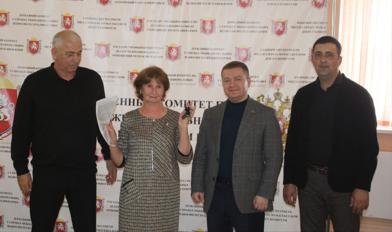 Торжественное вручение ключей прошло в Госкомнаце Крыма с участием заместителя председателя Государственного комитета по делам межнациональных отношений Республики Крым Рефата Дердарова, депутатов Государственного Совета Республики Крым Ибраима Ширина и Эльмара Меннанова, а также представителей адаминитсрации Ленинского и Нижнегорского районов.