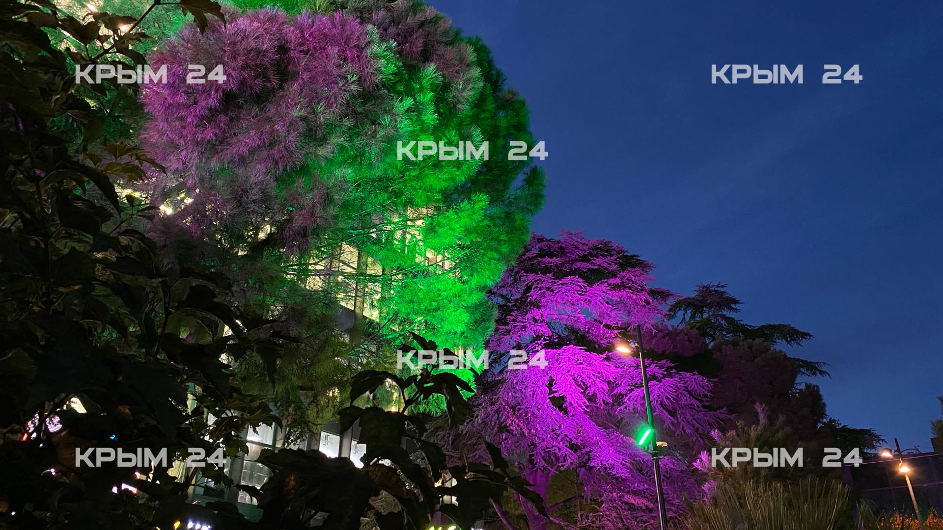 Посмотрите, как сказочно выглядят деревья на Советской площади в Ялте.