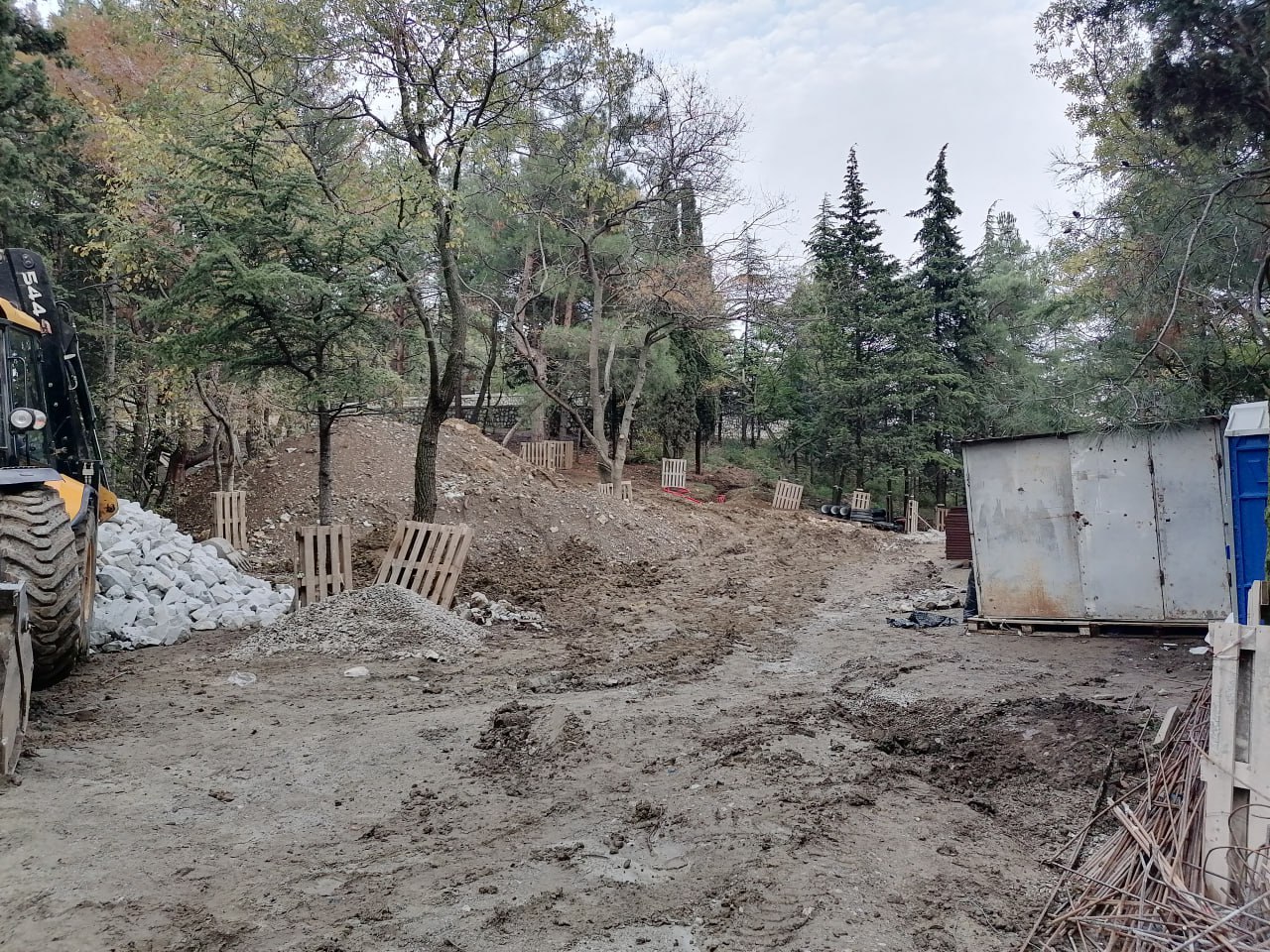 В настоящее время, подрядной организацией ведутся работы по всей территории парка проложены электрические инженерные сети, подготовлено основание под установку прогулочных и пешеходных зон, ведутся работы по обустройству оснований под детские и спортивные площадки.