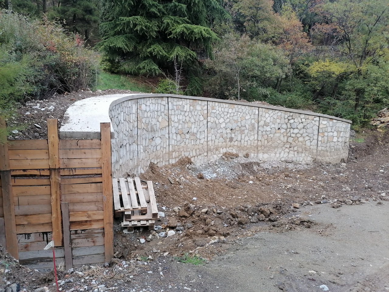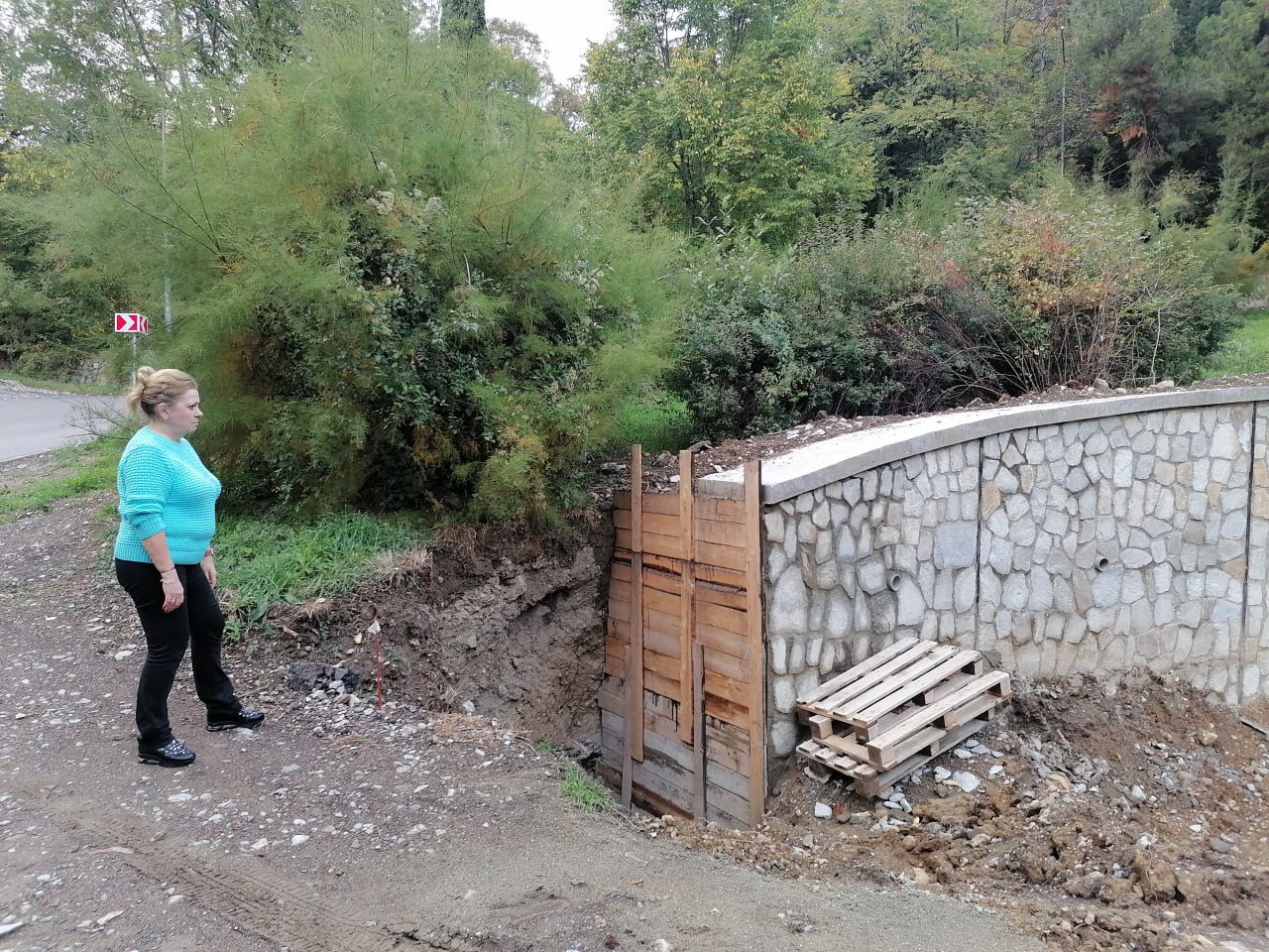 Также необходимо обратить внимание на состояние подпорной стены в районе остановки общественного транспорта, которая разрушается из-за корней деревьев и работы тяжелой техники на объекте.