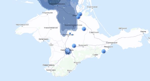 По данным "Яндекс.Погоды", осадки накрыли еще и северную часть полуострова.