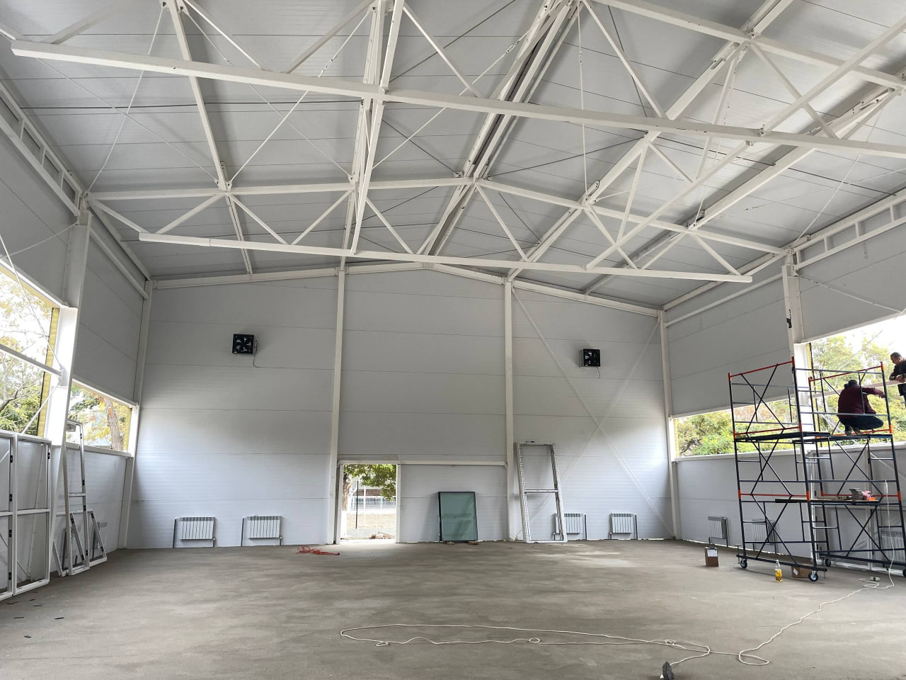 Сейчас на объекте проведены основные строительные работы, осталось выполнить монтаж электроснабжения, водоснабжения, видеонаблюдения, укладку спортивного линолеума, устройство подвесных потолков. После чего будет произведен завоз спортивного оборудования.