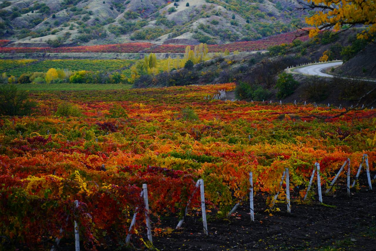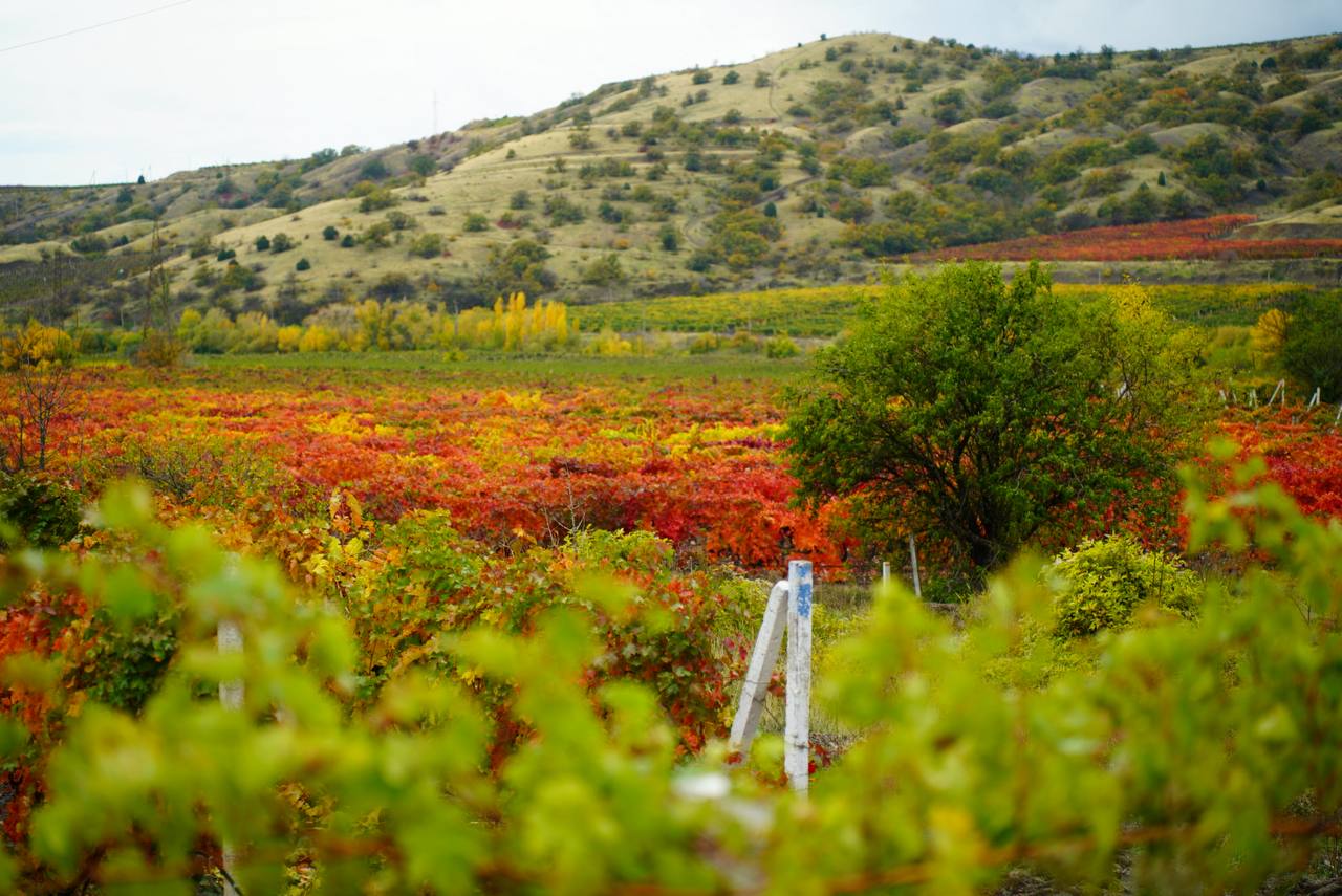 Осенние виноградники Крыма - это чистая магия. В воздухе висит терпкий аромат спелых ягод, а ряды лоз переливаются золотом, янтарём и бордо. Тихий шорох листьев, горы на горизонте, море гдето совсем рядом и ты как будто в открытке.