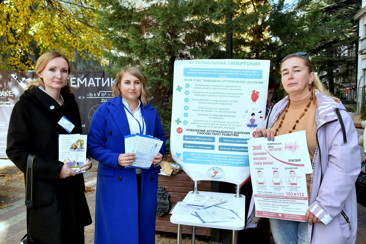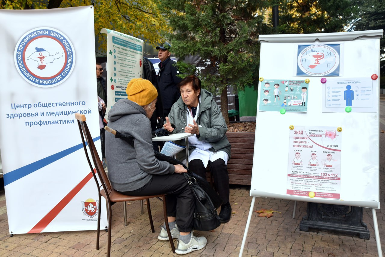 В Симферополе медицинские работники ГБУЗ РК «Центр общественного здоровья и медицинской профилактики» и представители ООО «СМК «Крыммедстрах» провели акцию, приуроченную к Всемирному дню борьбы с инсультом.