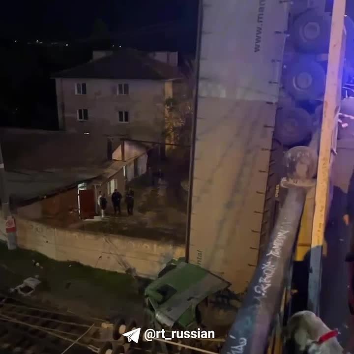 Местные каналы пишут, что водитель жив. Предварительно, он не справился с управлением.