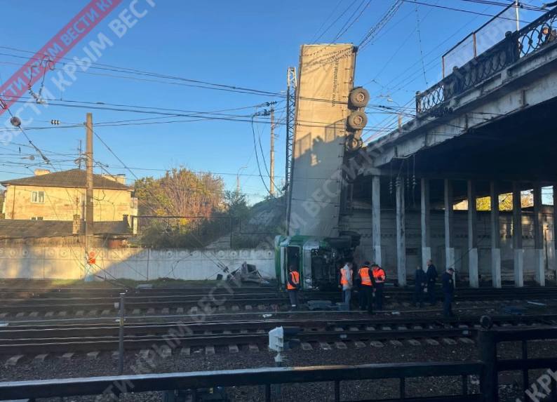 Предварительно, фуру, упавшую на ж/д пути в Симферополе, планируют разрезать на две части