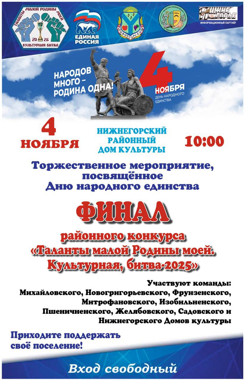 Приглашаю Вас на торжественное мероприятие, посвященное Дню народного единства, которое пройдет 4 ноября в Районном Доме культуры в 10.00!