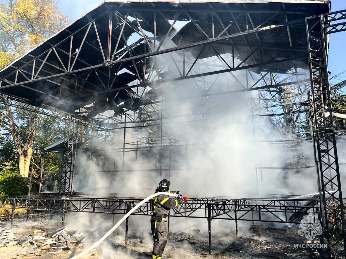 Горящую сцену на Историческом бульваре в Севастополе потушили.
