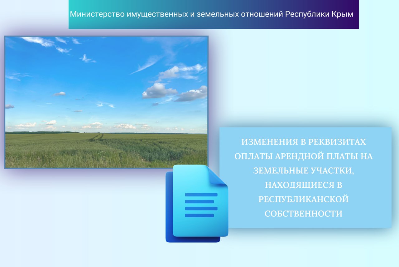 Минимущество Крыма информирует об изменениях в реквизитах оплаты арендной платы на земельные участки, находящиеся в республиканской собственности.