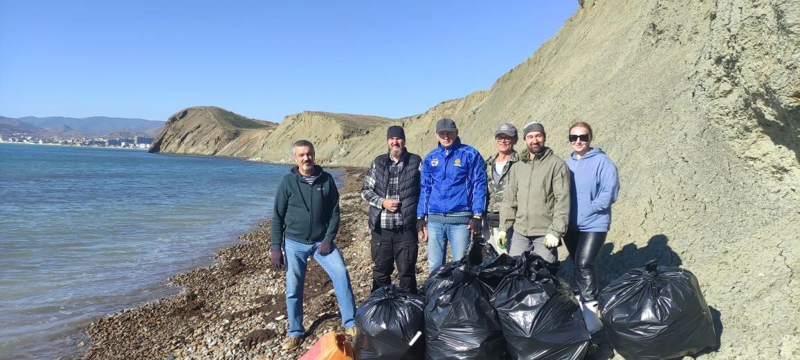 Активные жители Коктебеля убирают территорию Мёртвой бухты, где уже собрано более 10 мешков пластикового мусора.