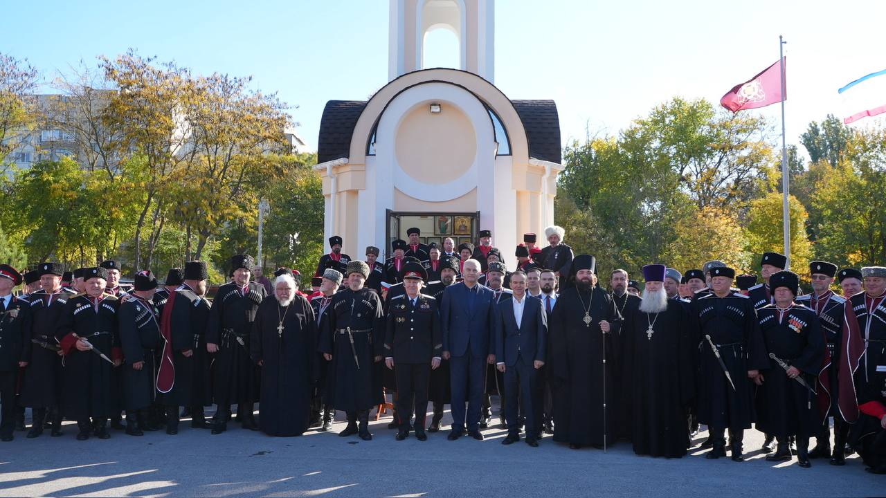 Сегодня у храма апостола Андрея Первозванного прошел чин освящения новой часовни Покрова Пресвятой Богородицы. Она построена в честь подвига казаков Кубанского казачьего войска, проявленного при возвращении Крыма и Севастополя в состав России в 2014 году.