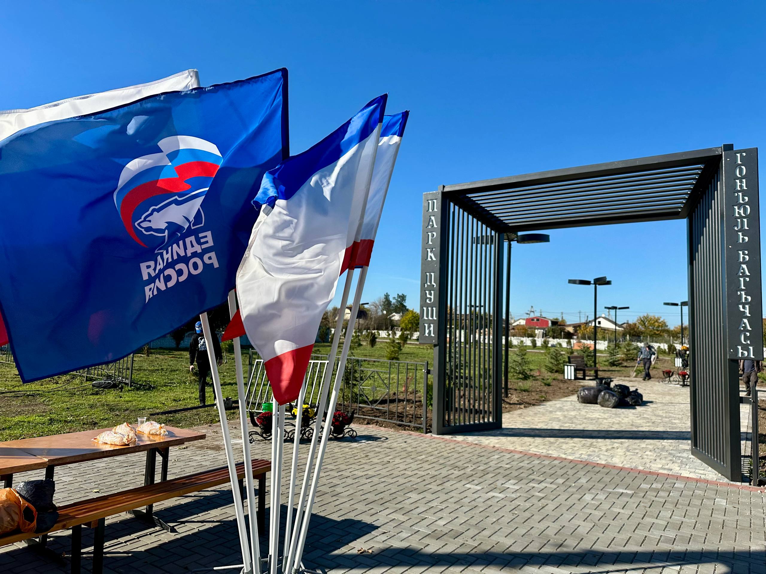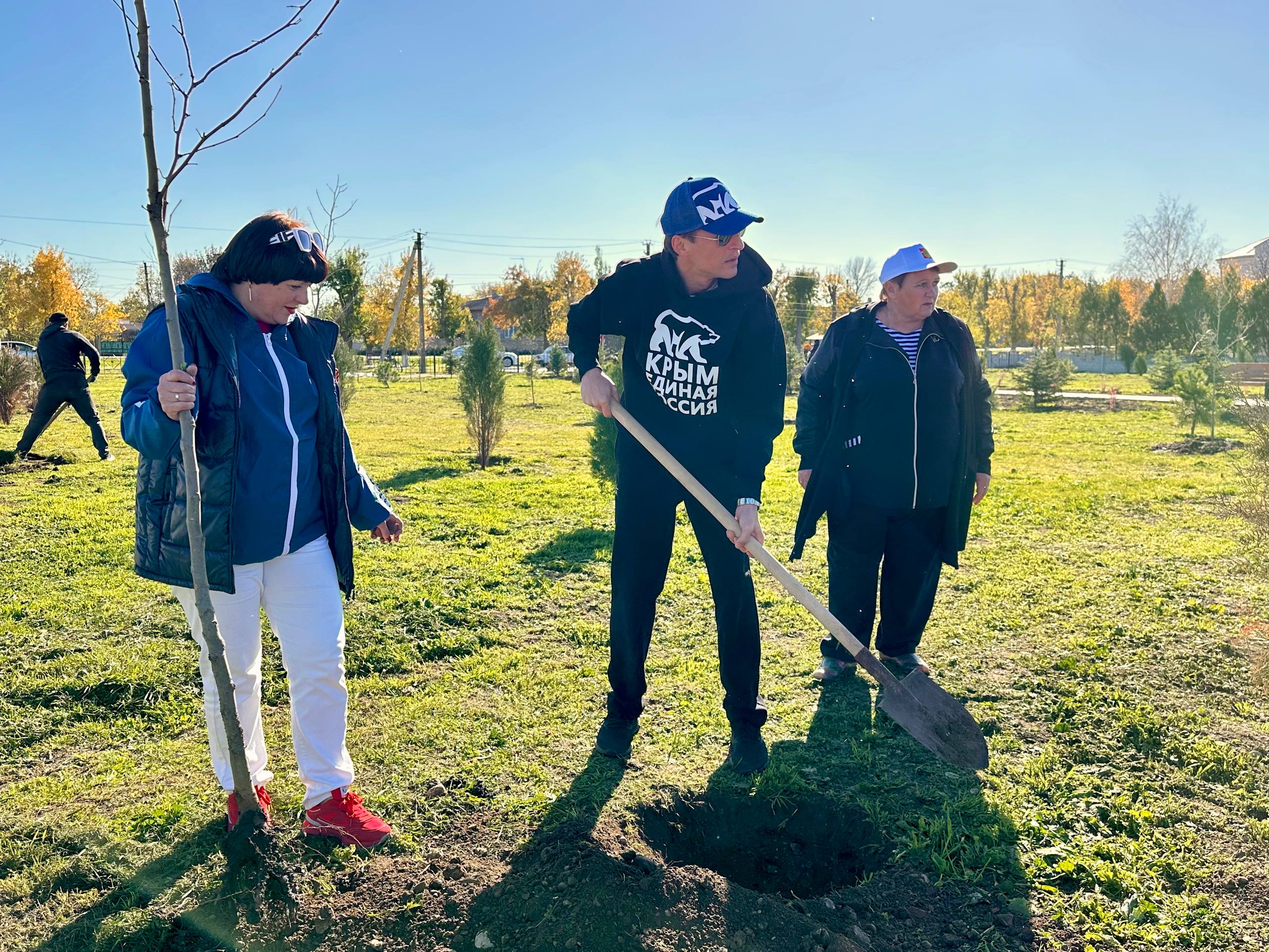 В посёлке Нижнегорский и селе Красногвардейское Советского района вместе с жителями убрали территорию и высадили зелёные насаждения.