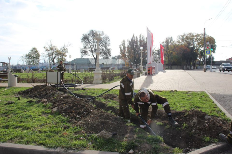 Монтаж системы автоматического полива в сквере «Монетка» вышел на финальный этап.