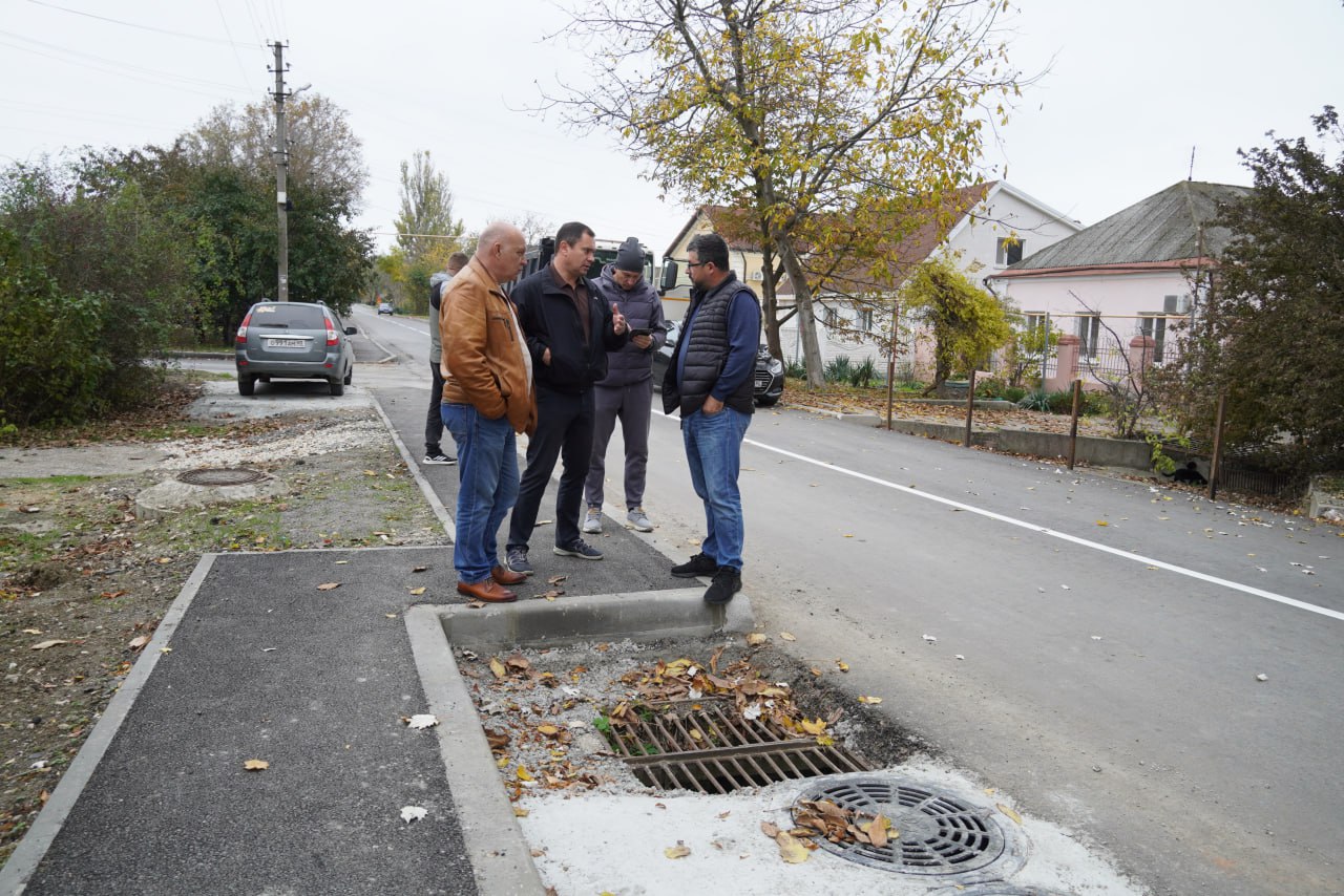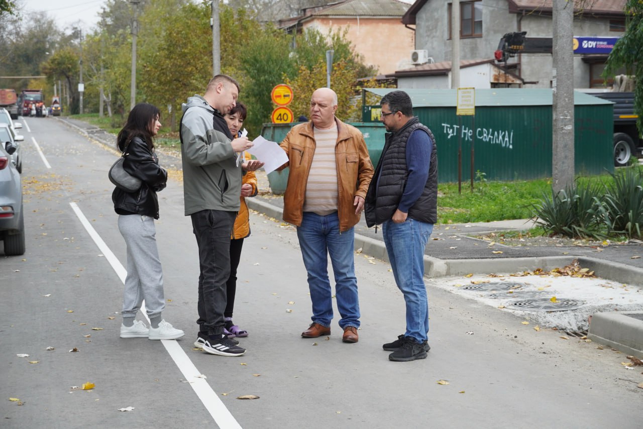 Глава администрации Керчи Олег Каторгин провел выездную встречу с керчанами, проживающими по ул. Бардина, где продолжается ремонт проезжей части с устройством тротуара.
