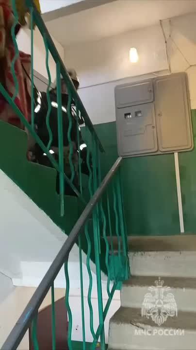 Пожарвозник на третьем этаже пятиэтажки. Мужчину вывели на улицу с помощью "самоспасателя".