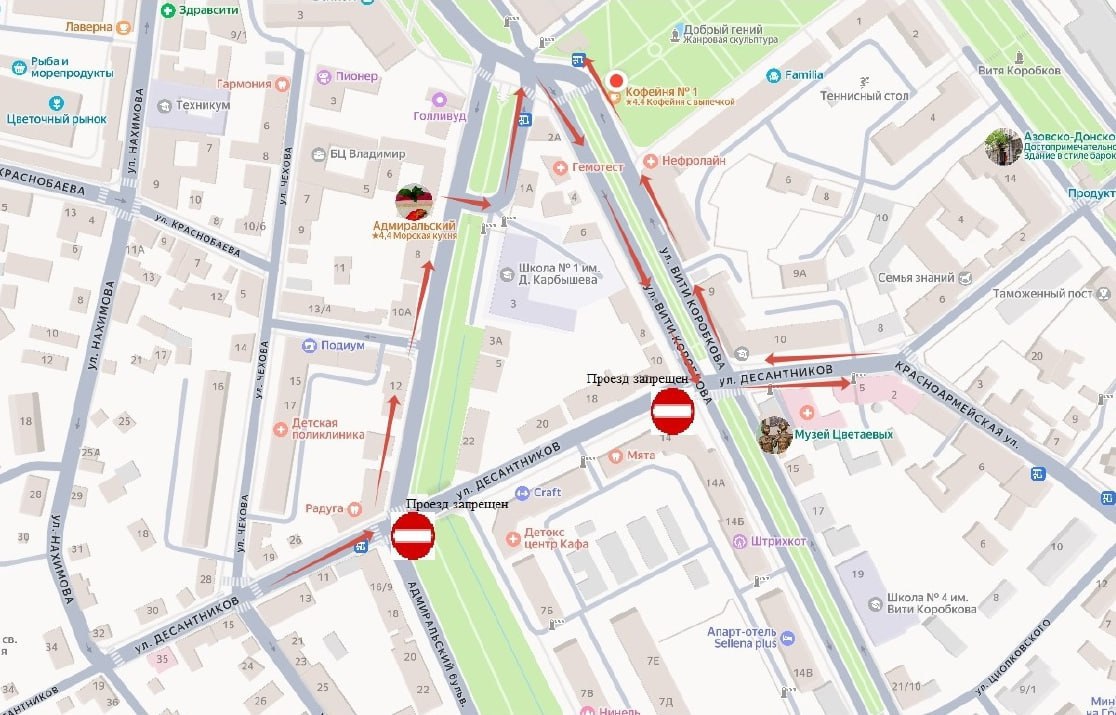 «В связи с необходимостью проведения работ 13 и 14 ноября с 8:00 до 17:00 будет перекрыто движение на участке ул. Десантников от перекрестка с Адмиральским бульваром до перекрестка с ул. В. Коробкова», — сообщили в городской администрации.