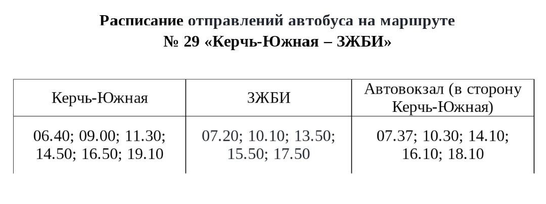 С 17.11.2025 г. в ТЕСТОВОМ режиме будет изменено расписание движения автобуса на муниципальном маршруте регулярных перевозок № 29 «Керчь-Южная – ЗЖБИ» (в утренние часы).