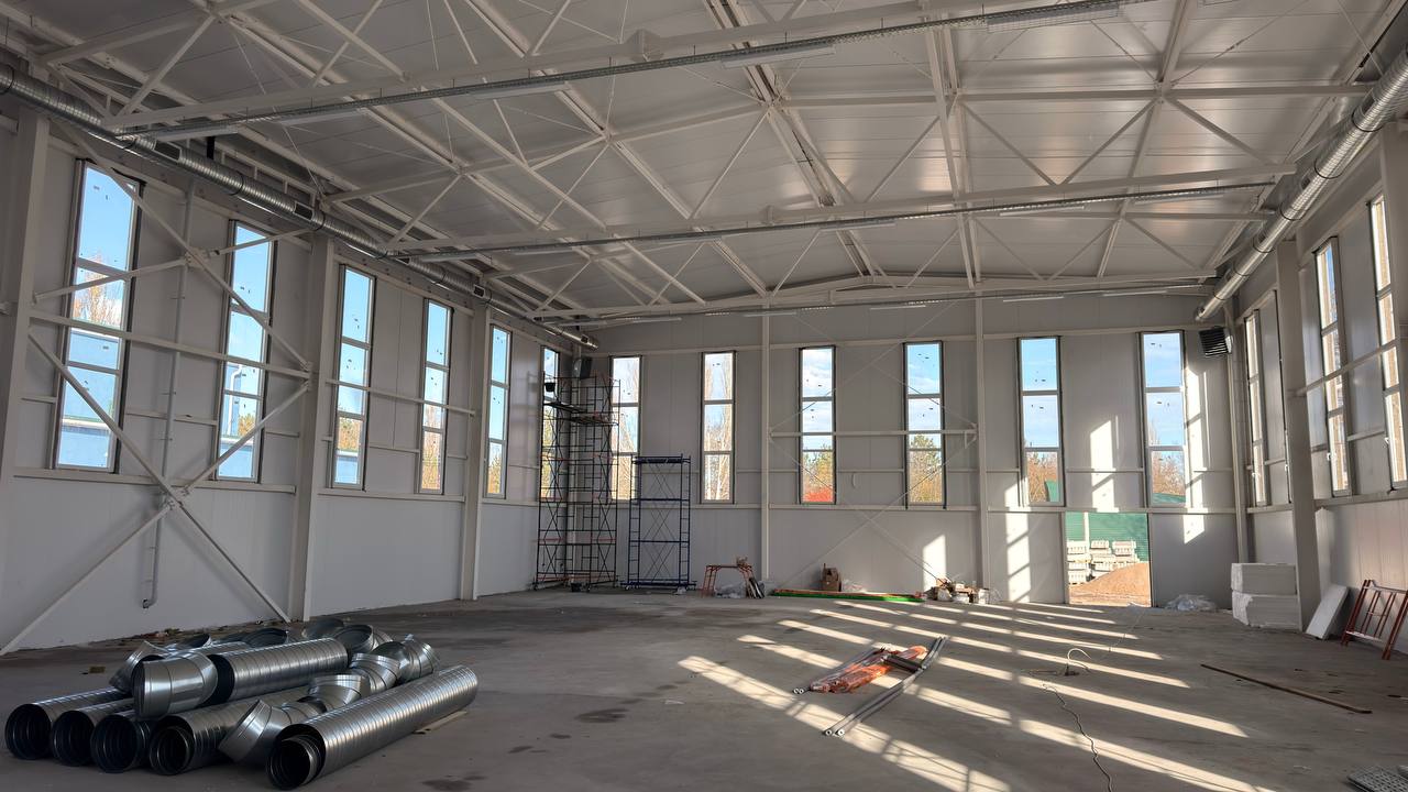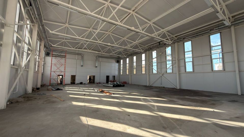 На заключительном этапе находятся фасадные работы, уже установлены окна, выполнены гипсокартонные перегородки и стяжка пола. Сейчас проводятся внутренние отделочные работы, благоустраивается территория.