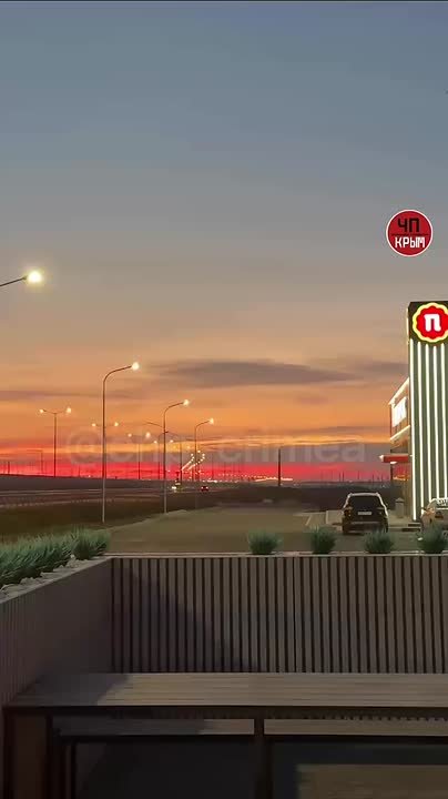 Над Крымским мостом небо окрасилось в флаг Российской Федерации