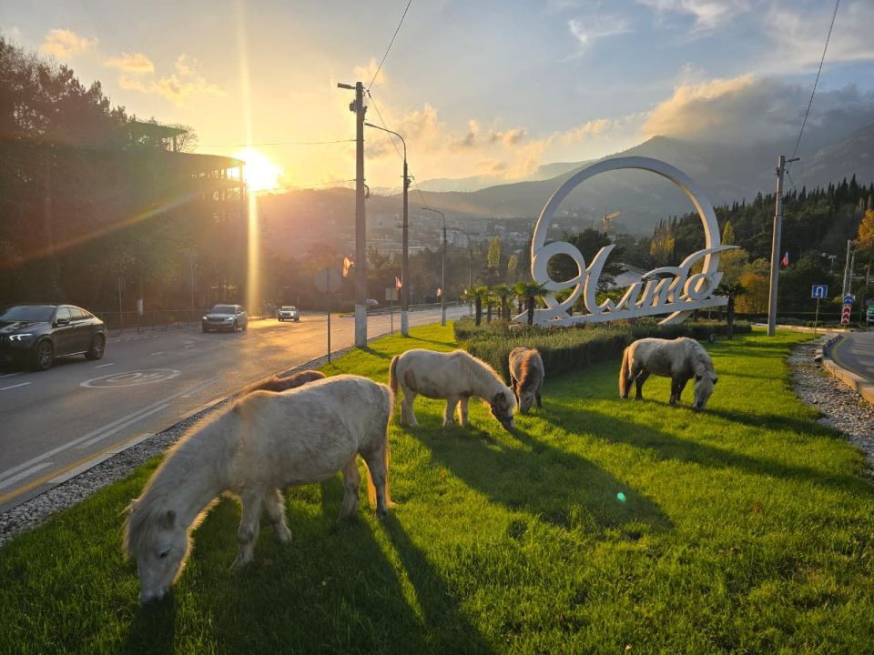 Эти милые создания сегодня чуть не спровоцировали транспортный коллапс, решив отобедать на въезде в Ялту Их владельца быстро нашли сотрудники мунконтроля – ему грозит штраф. Прошу помнить, что ответственность за четвероногих всегда несут их двуногие хозяева. Ну и, конечно, клумбы созданы тружениками «Зеленстроя» вовсе не для выпаса животных