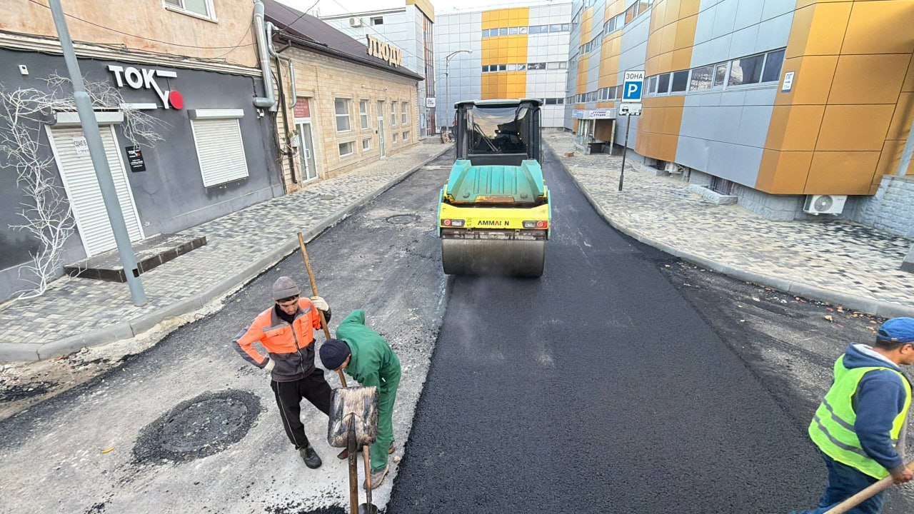 В Кооперативном переулке укладывают финишный слой асфальта. Работы разбили на несколько этапов: вчера дорожники постелили одну полосу, сегодня – вторую.