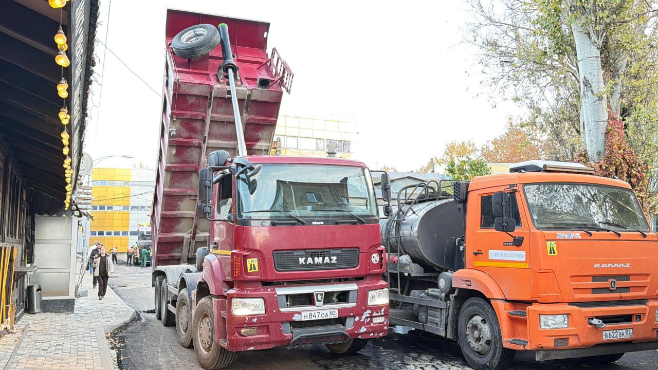 Всего запланировано обновление около 350 м дороги. Помимо дорожного покрытия, заменены бордюры и тротуарная плитка. Работы выполняет компания ООО «Крым-магистраль».