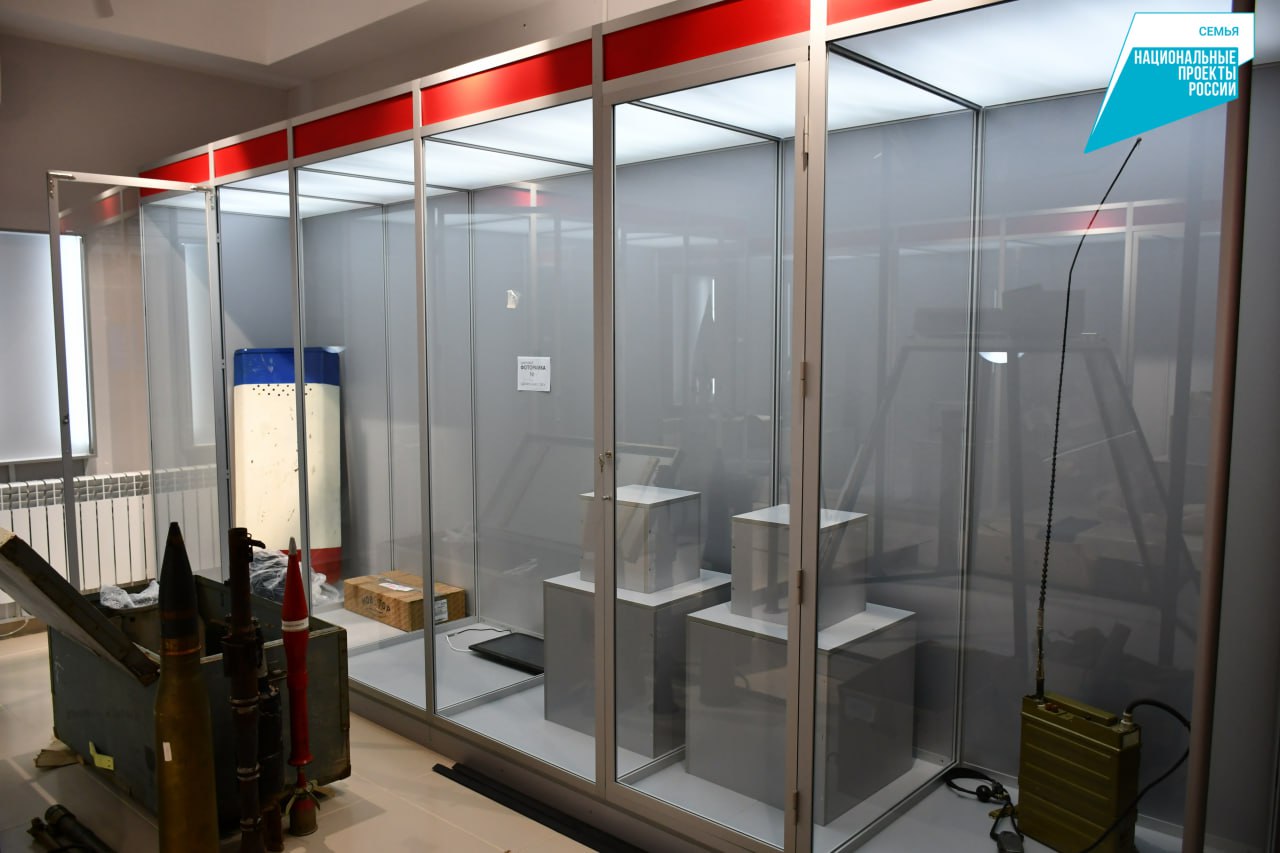 Приобретены современные витрины, напольные стенды, интерактивные столы, проекционное оборудование светодиодные светильники. Для обеспечения долгосрочной сохранности фондов закуплены специализированные стеллажи, системы кондиционирования воздуха и современная оргтехника. Все работы выполнены в строгом соответствии с утвержденным графиком и техническим заданием.