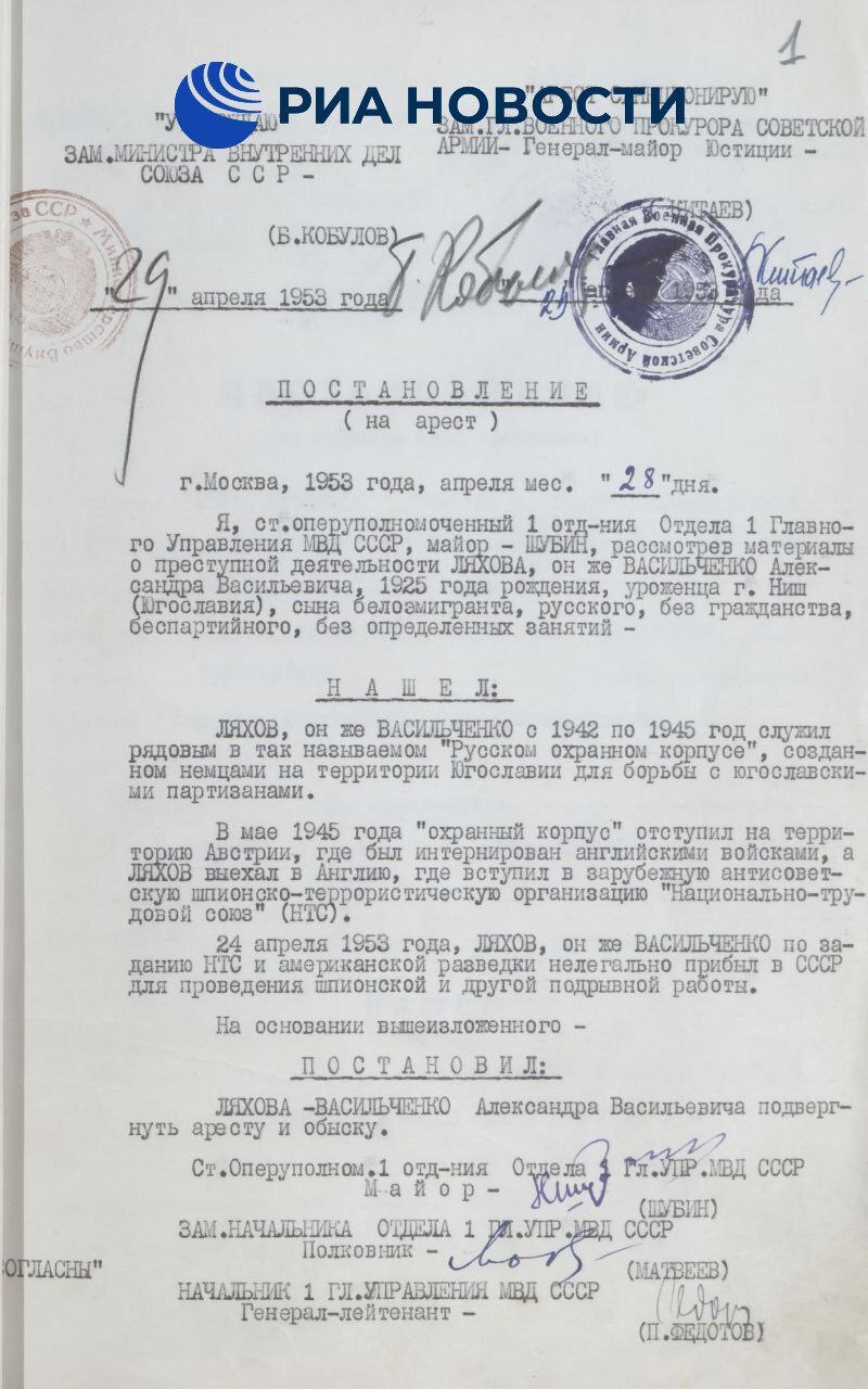 Вопрос: При задержании вас 27 апреля сего года, а также на последующих допросах под давлением улик вы признались, что являетесь агентом американской разведки и участником зарубежной антисоветской организации так называемой «Национально-трудовой союз» и что в СССР прибыли для проведения подрывной работы. Вы подтверждаете эти показания?Ответ: Да, подтверждаю. Я и мой напарник, известный мне по кличке «Пит», действительно являемся агентами американской разведки и участниками антисоветской организации «Национально-трудовой союз».<…>