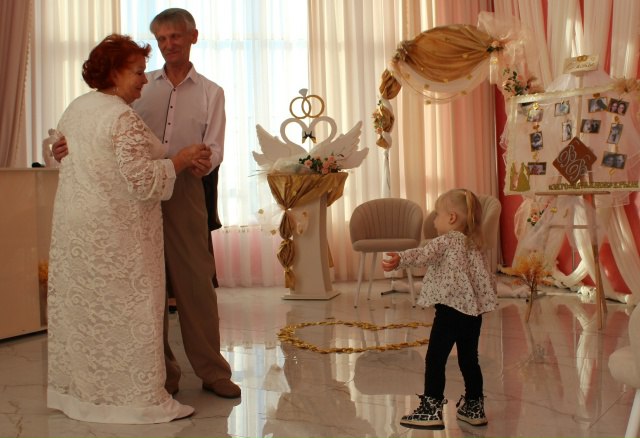 «В зале торжественных событий, собрались свидетели этого невероятного представления. Дочь с зятем, внучки и их избранники, правнучки, друзья и близкие окружали своим теплом главных героев вечера», - рассказали в ЗАГСе.