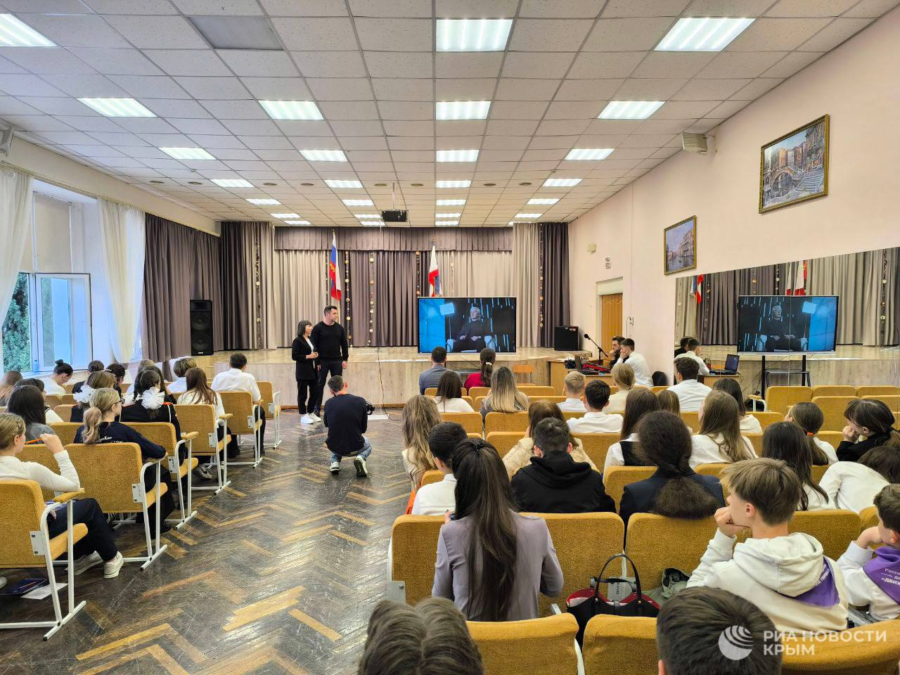 Шеф-редактор сайта РИА Новости Крым Евгения Мартыненко и обозреватель сайта Алексей Гончаров провели мастер-класс в рамках медиамастерской для учащихся ялтинских школ.
