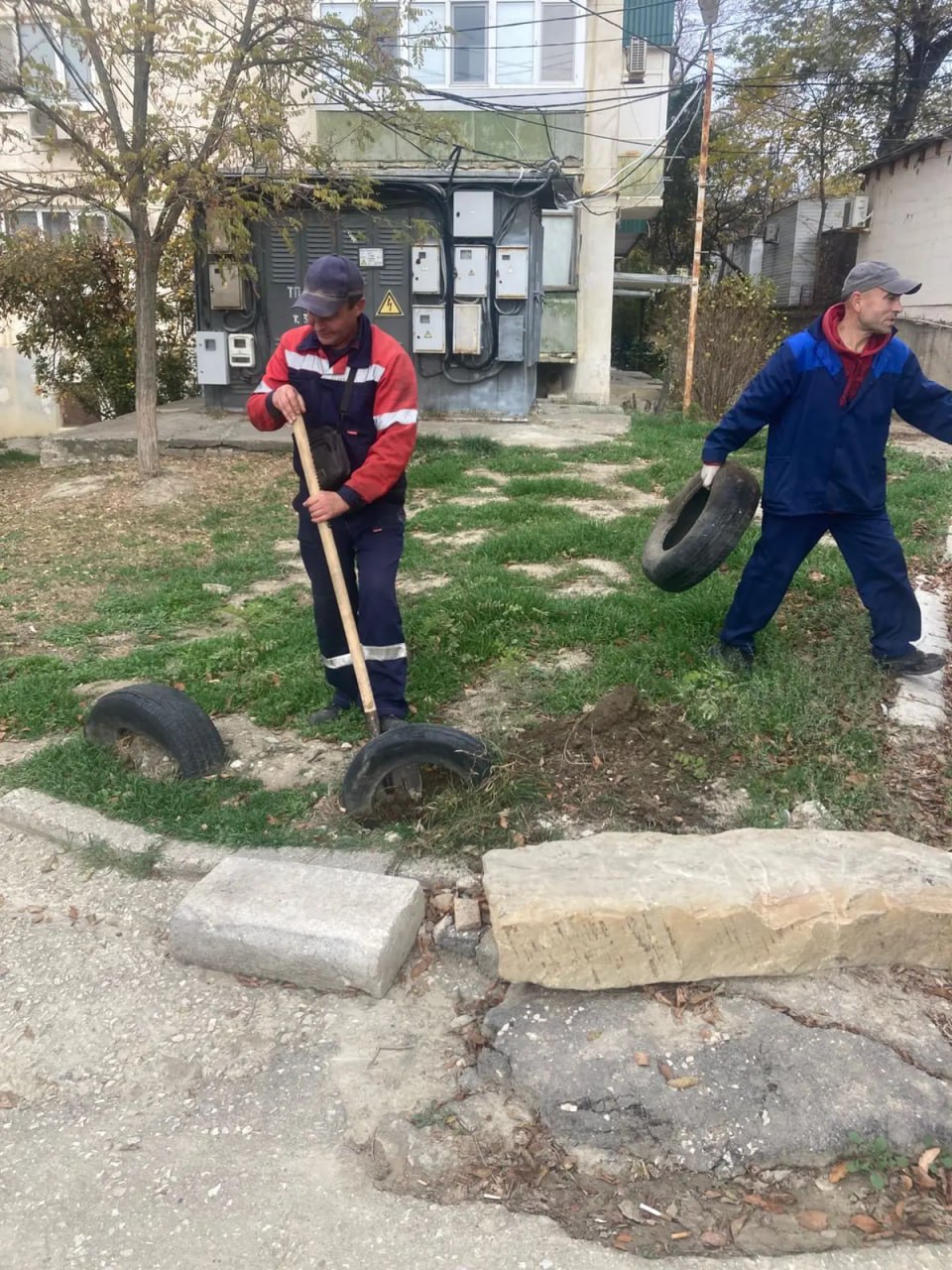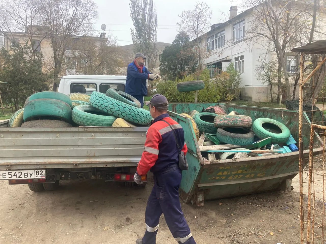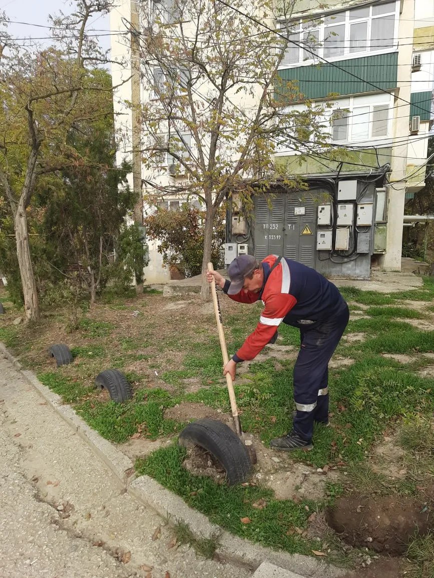 Работниками управляющей организации АО "Кафа-Комфорт" проводится демонтаж шин на придомовых территориях, их сбор и вывоз.