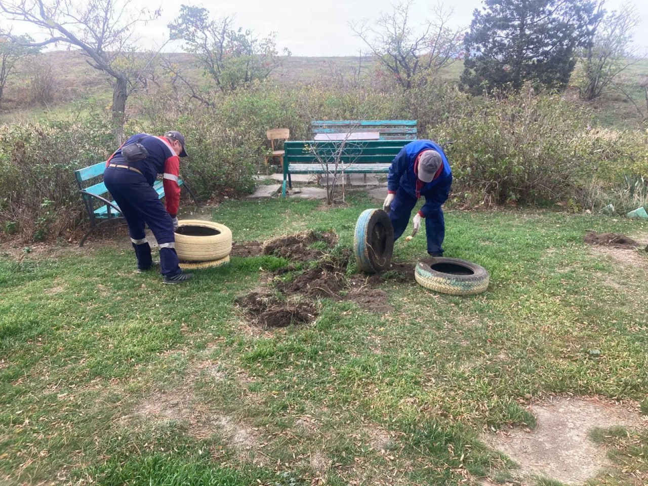 В поселке Орджоникидзе продолжаются работы по утилизации отработанных автомобильных покрышек.