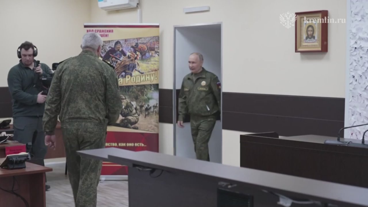 Кадры посещения Владимиром Путиным командного пункта группировки «Запад»
