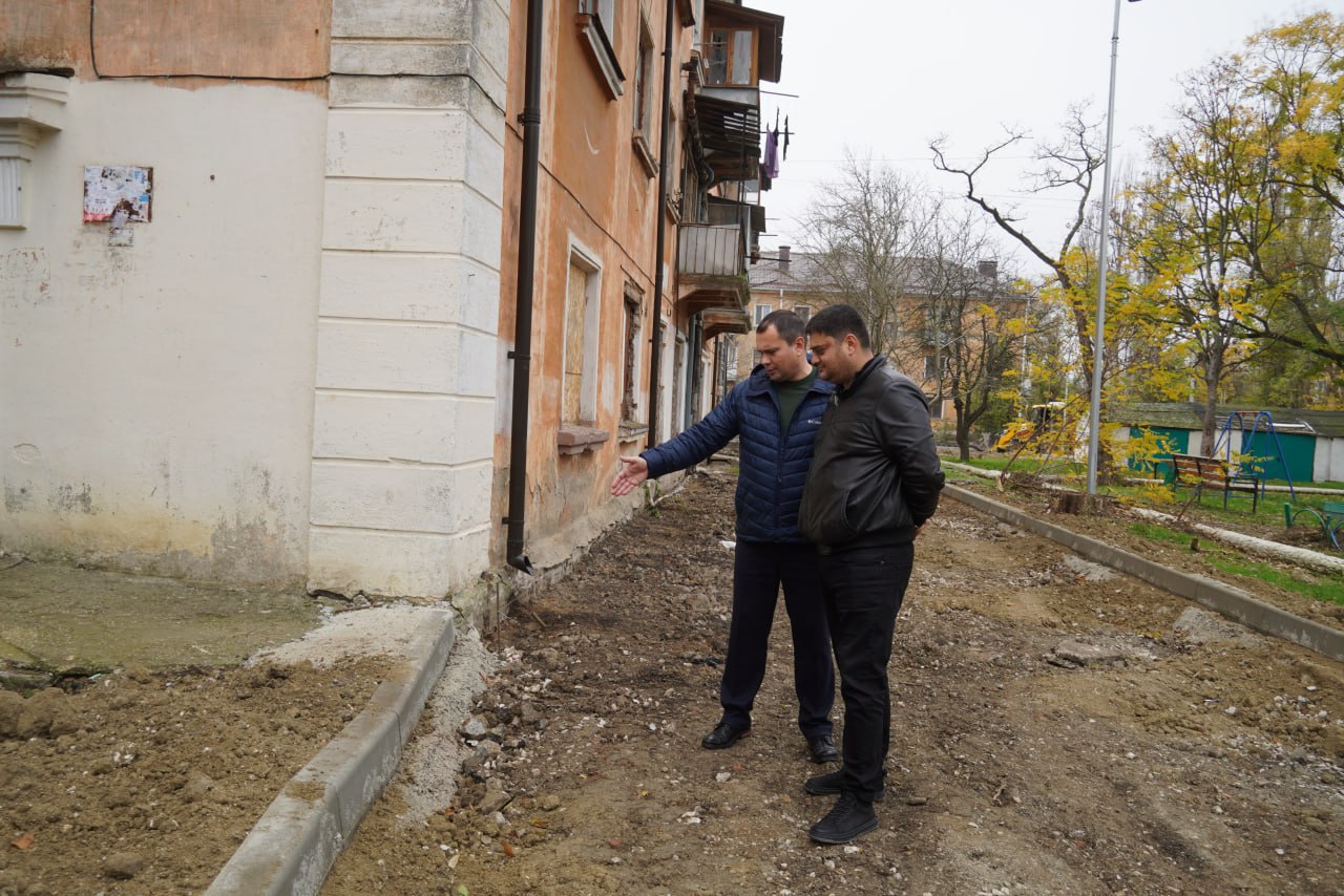 Руководитель администрации города проинспектировал ход благоустройства, обсудил с представителями фирмы-подрядчика детали производства работ.