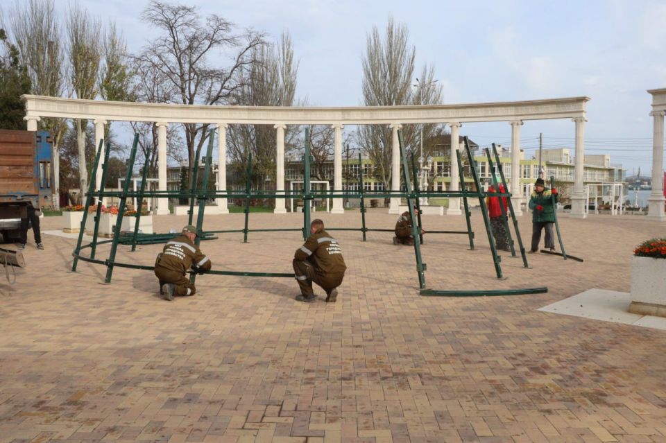 В Керчи стартовала подготовка к Новому году – на центральной площади устанавливают главную елку.