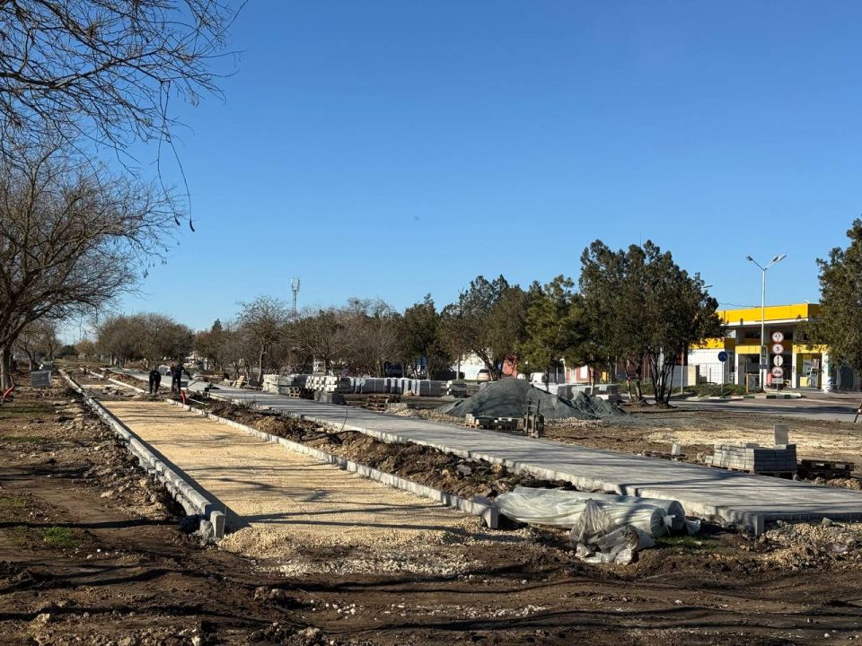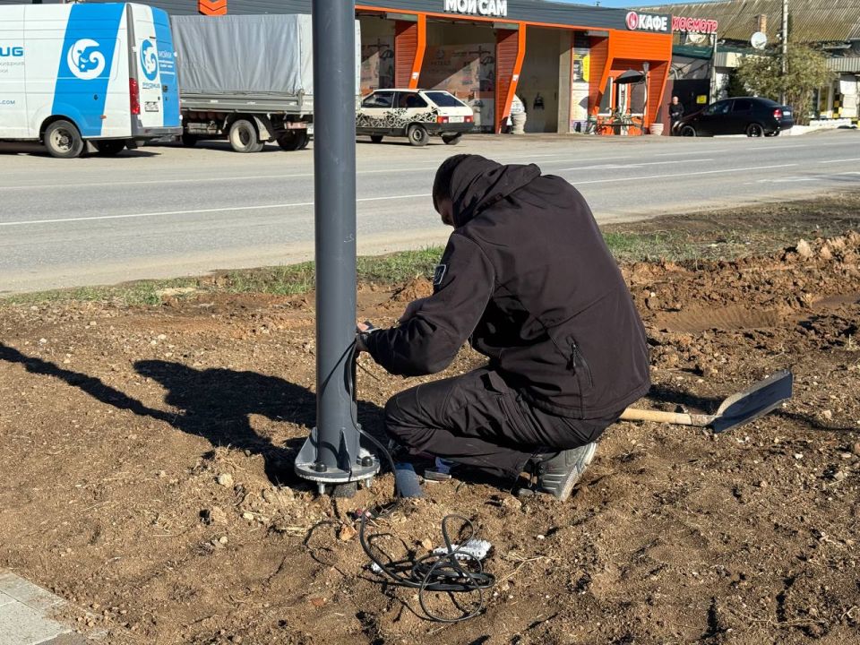 На участке от ул. Эскадронной до ул. Немичевых уложена тротуарная плитка, устанавливают опоры наружного освещения, выполняют монтаж системы автополива.