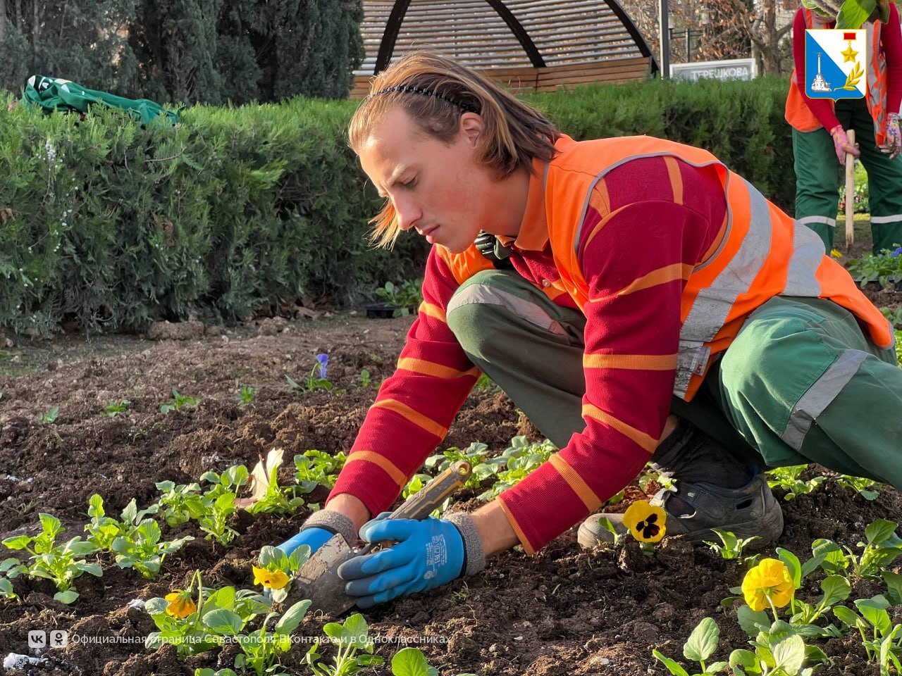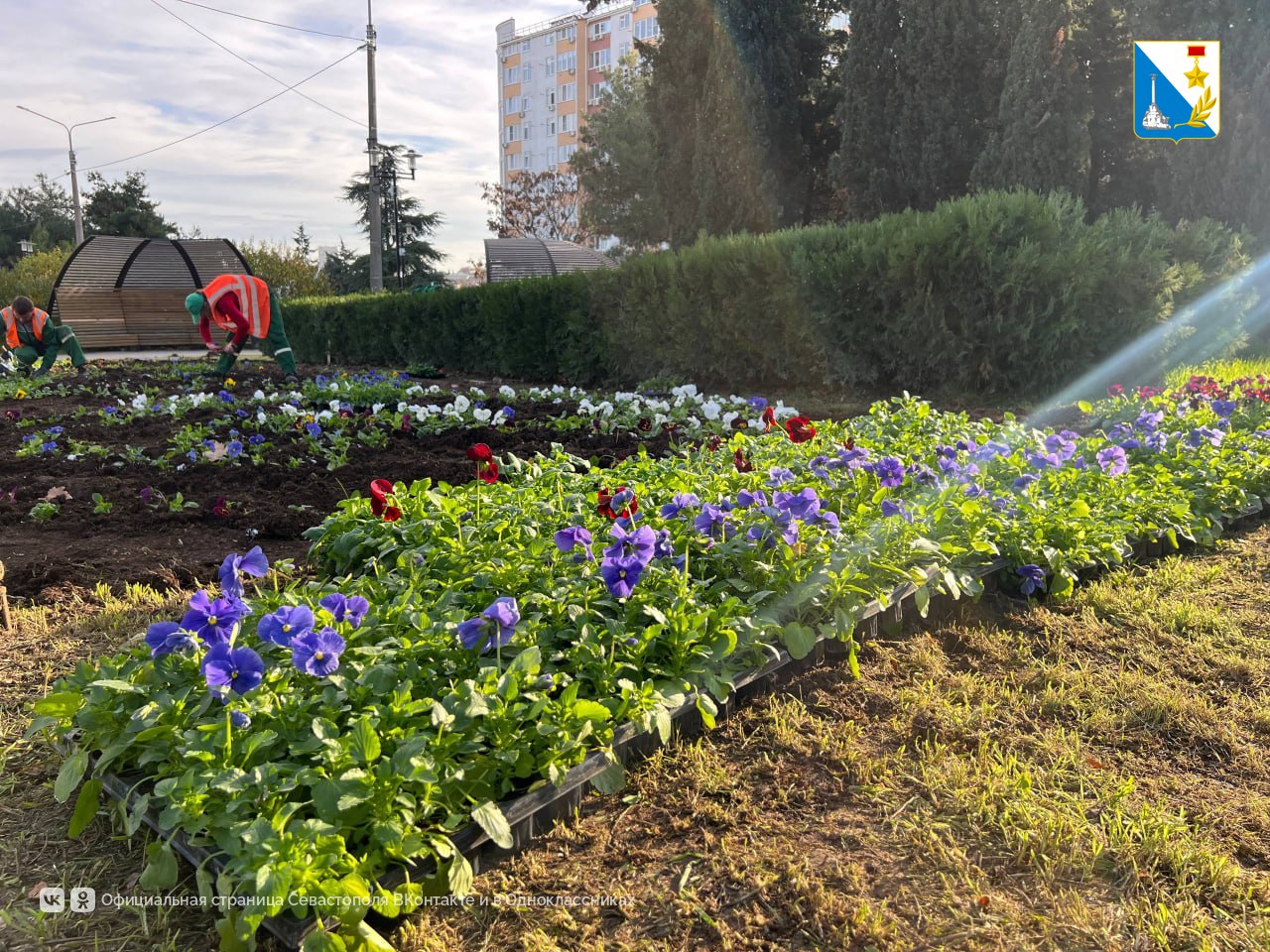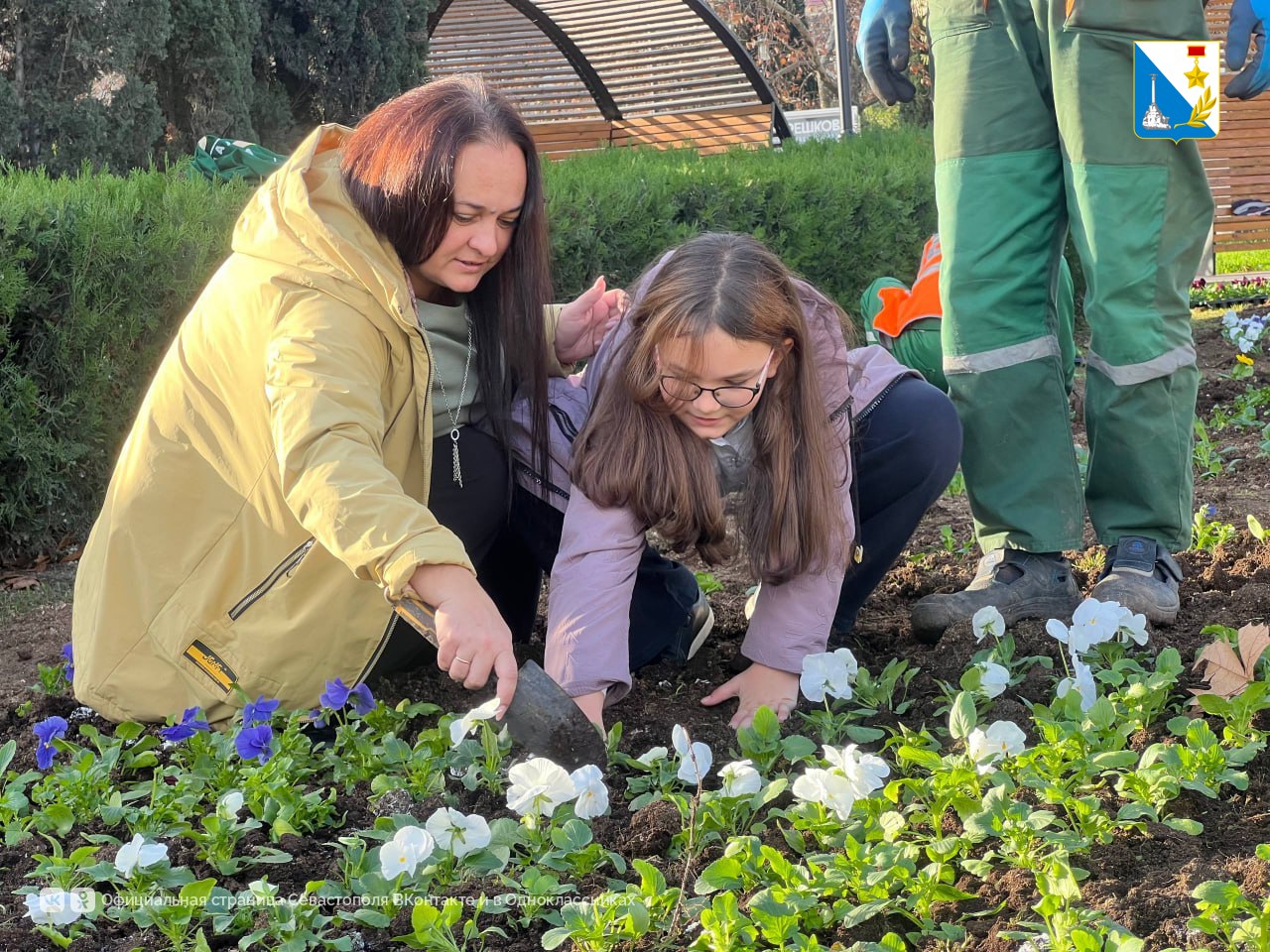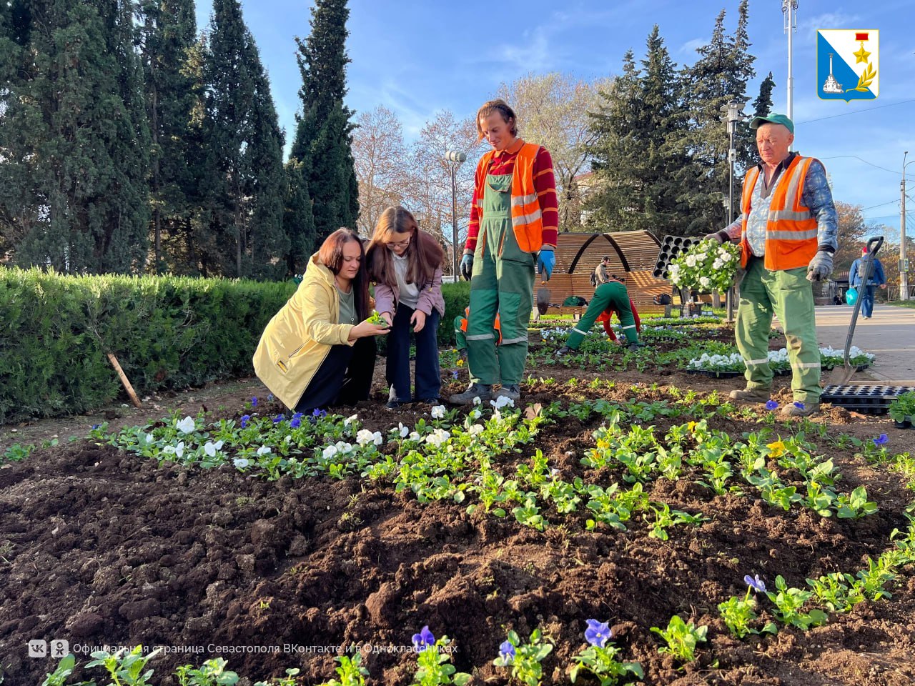 Три юные художницы — Таисия Вдовенко, Вероника Потапова и Анастасия Качанова — победили в конкурсе, и теперь их эскизы перенесли на клумбы с помощью виол. Эти морозостойкие цветы, которые часто называют анютиными глазками, будут радовать жителей до самых морозов и вновь расцветут весной.