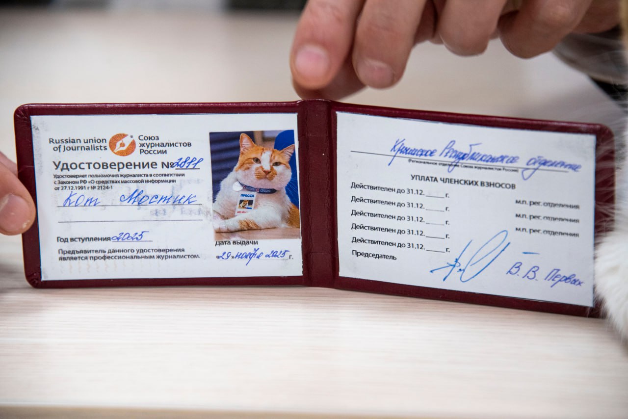 Это большая честь и признание моих заслуг! Удостоверение из рук в лапы мне вручил председатель регионального отделения СЖР Вадим Первых.