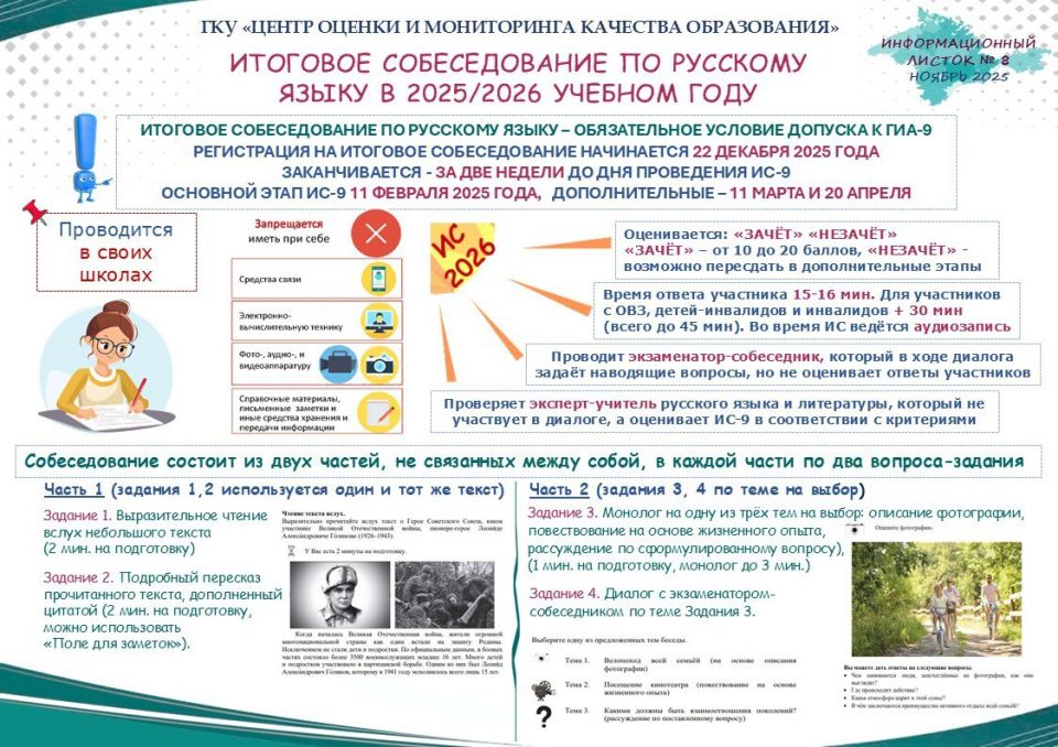 Государственная итоговая аттестация (ГИА ) в 9 и 11 классах и итоговое собеседование по русскому языку в 2025/2026 учебном году.