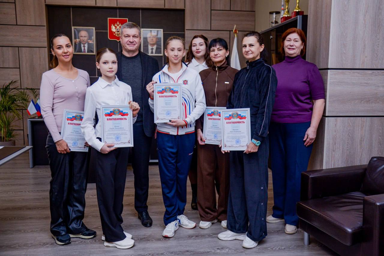 Сегодня вручил благодарности учащимся МБУ ДО «Спортивная школа» Карине Шульге и Веронике Фроловой за высокие результаты в соревнованиях по художественной гимнастике различных уровней.