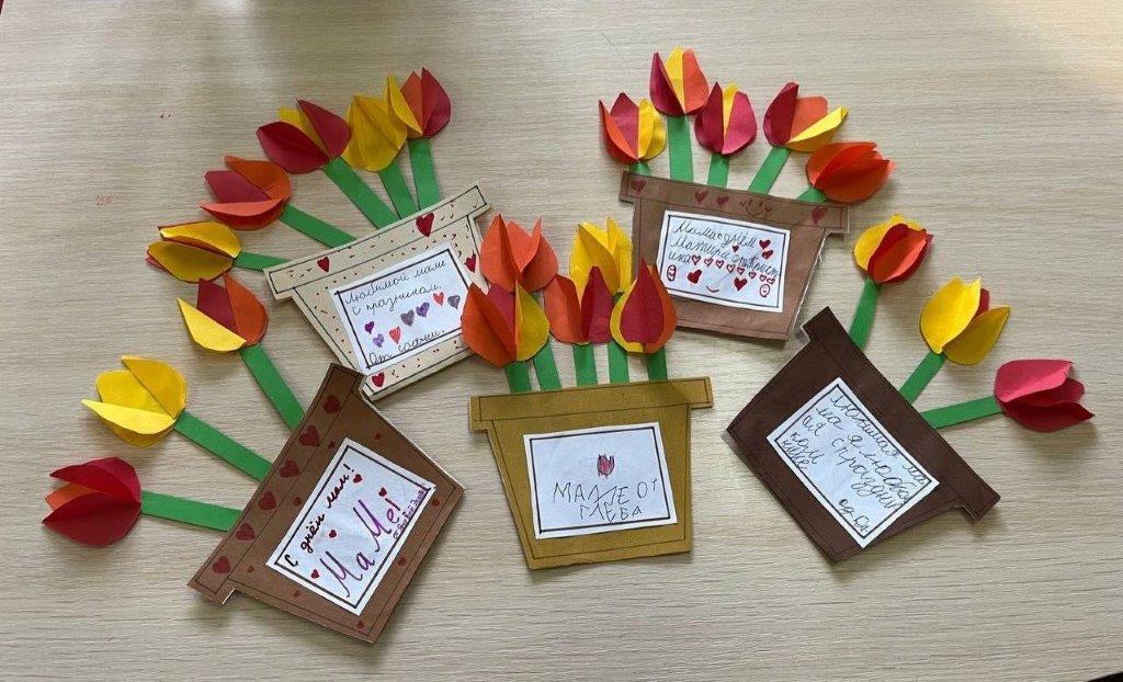 Также дети своими руками создавали поздравительные открытки для мам, проявляя креативность и фантазию. Каждый ребенок вложил в свою работу частичку любви и тепла, чтобы порадовать маму.