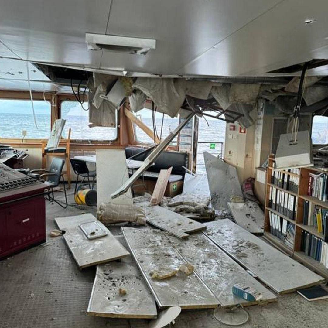 Известно, что дрон летел со стороны Одессы и был оснащен шрапнелью. Он ударил по ходовой рубке, где были капитан и второй механик. Оба получили осколочные ранения, им оказали помощь на борту.