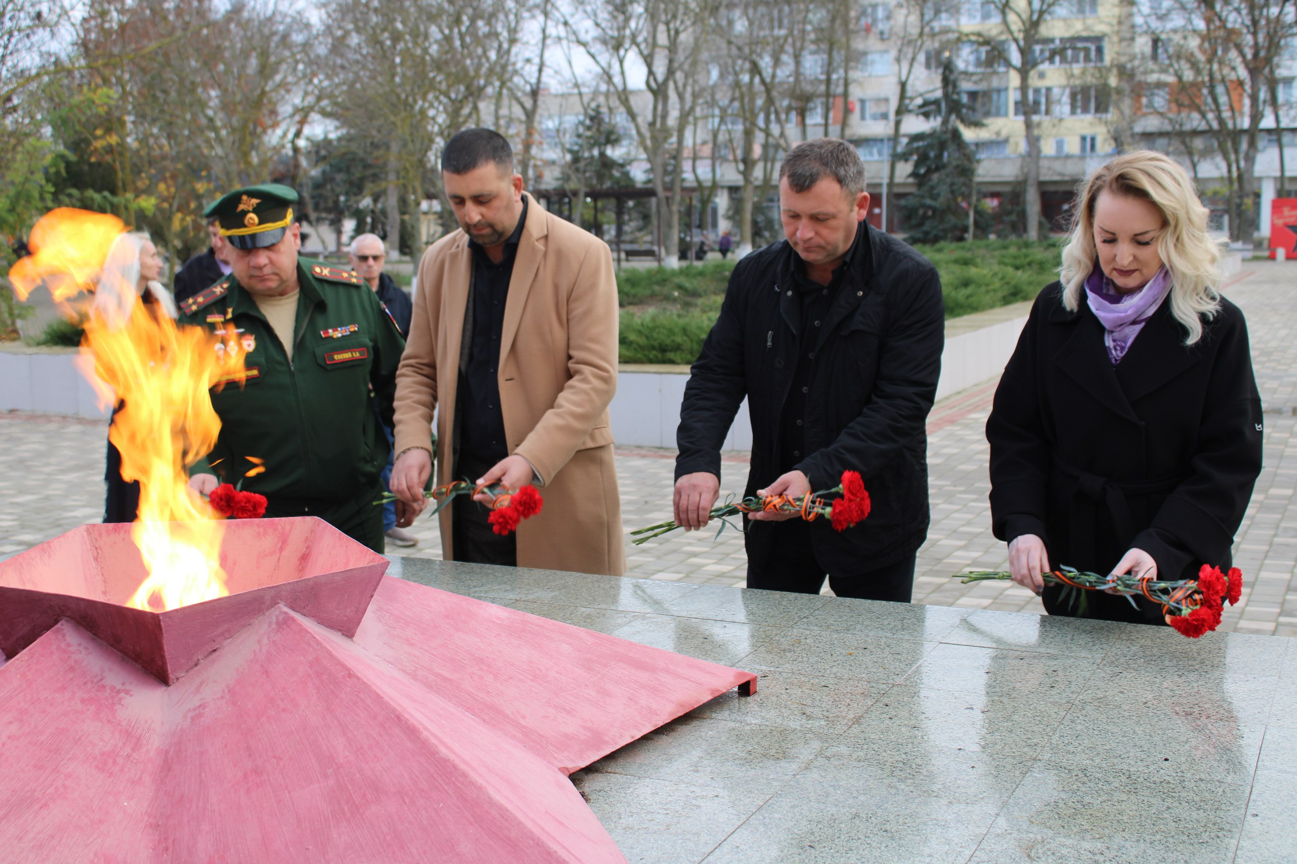 Возложить цветы к памятнику в этот день пришли Председатель Ленинского районного совета Виктория Заботина и Глава Администрации Ленинского района Республики Крым Игорь Крутьков и его заместители и руководитель аппарата Администрации района, председатель Ленинского районного Совета ветеранов Геннадий Новиков, директор музея боевой славы Ленинского района Сергей Жаботинский и жители района.