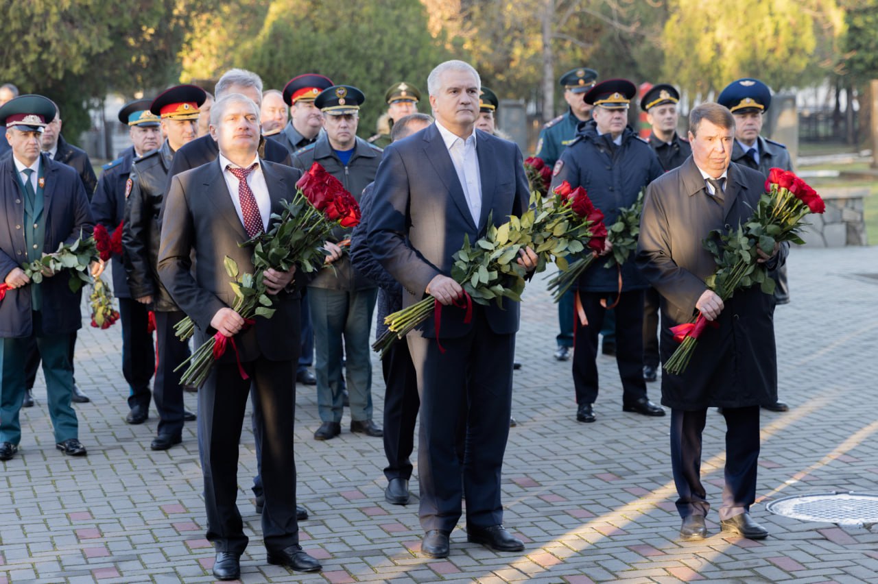 Торжественная церемония возложения цветов на Военном мемориальном кладбище в Симферополе объединила руководство республики, общественность и силовые структуры. В числе почетных гостей были: Глава Республики Крым Сергей Аксенов, заместитель полномочного представителя Президента Российской Федерации в Южном федеральном округе Кирилл Степанов, Председатель Совета министров Республики Крым Юрий Гоцанюк, первый заместитель Председателя Государственного Совета Республики Крым Сергей Цеков, заместитель Председателя Общественной палаты РК Владимир Резанов, руководство города Симферополя, а также руководители силовых и правоохранительных структур республики.